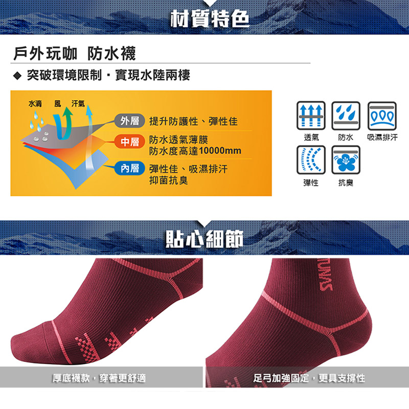 首頁 > 最新上架 > ATUNAS 歐都納 防水襪 黑 紫紅 M L 防水透氣登山襪 A1ASAA13N
