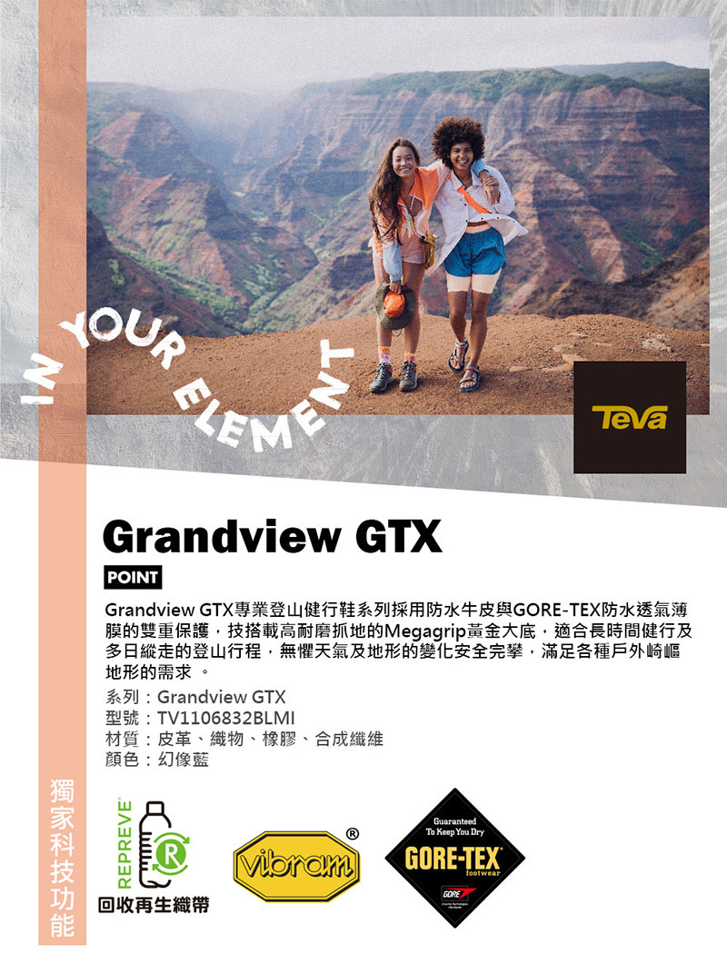 首頁 > 最新上架 > TEVA 美國 女 Ridgeview Mid 高筒戶外多功能登山鞋 休閒鞋 TV1116631BBLSM