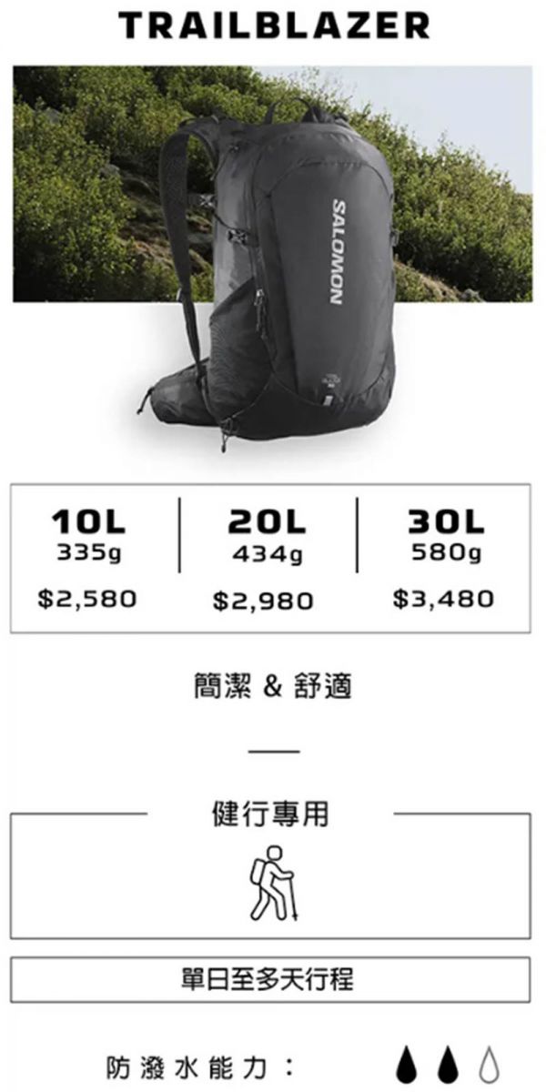 首頁 > 最新上架 > SALOMON 法國 TRAILBLAZER 10 20 30 多功能背包 新色 登山攻頂包 水袋背包 單日包