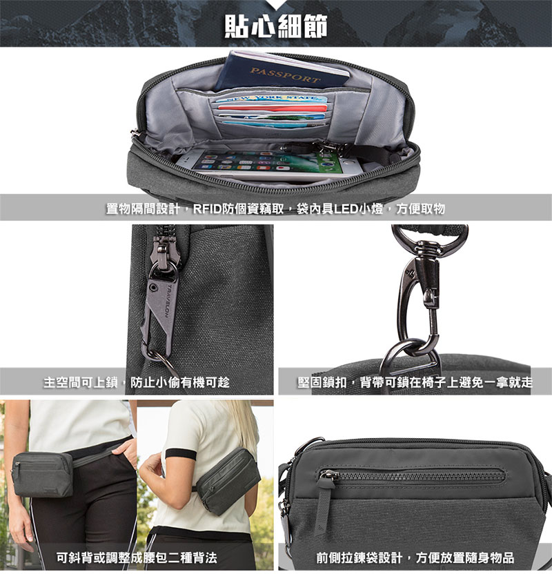首頁 > 最新上架 > TRAVELON 美國 METRO 手持肩背兩用包 灰 黑 TL-43416 防盜腰包 旅遊防盜包 斜背包