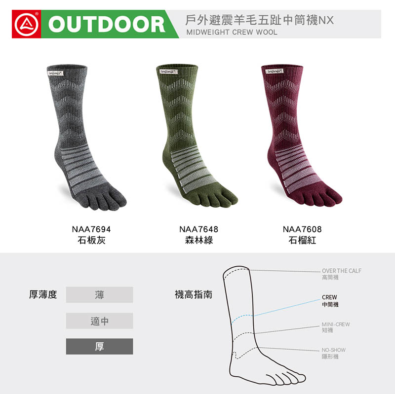 首頁 > 最新上架 > injinji Outdoor戶外避震羊毛五趾中筒襪NX NAA7694 NAA7608 NAA7648