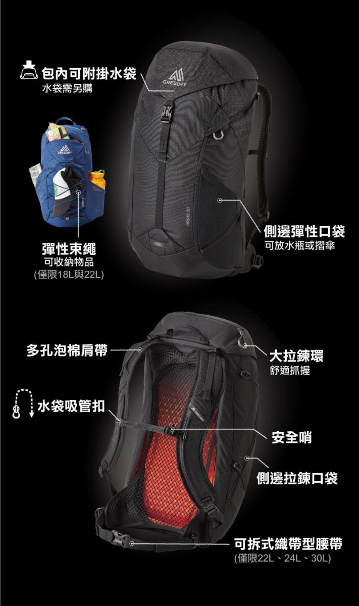首頁 > 最新上架 > GREGORY 美國 ARRIO 22L 多功能登山背包 帝國藍 碳黑 火花藍 登山包 透氣網背包 GG138424