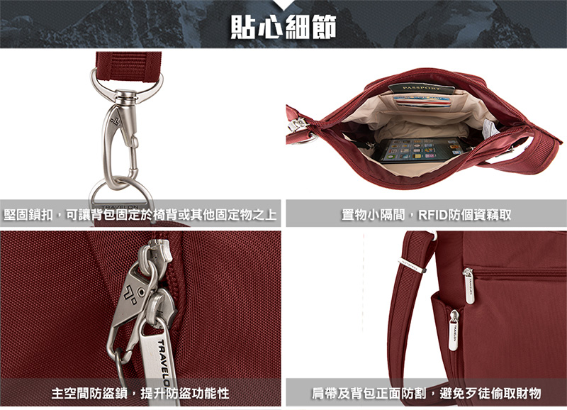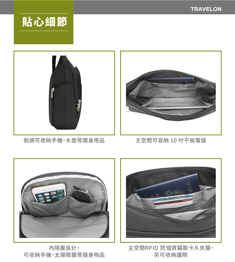 首頁 > 最新上架 > TRAVELON 美國 經典防盜側背包 42757深藍 黑 旅行隨身包 防盜包 TL-42757