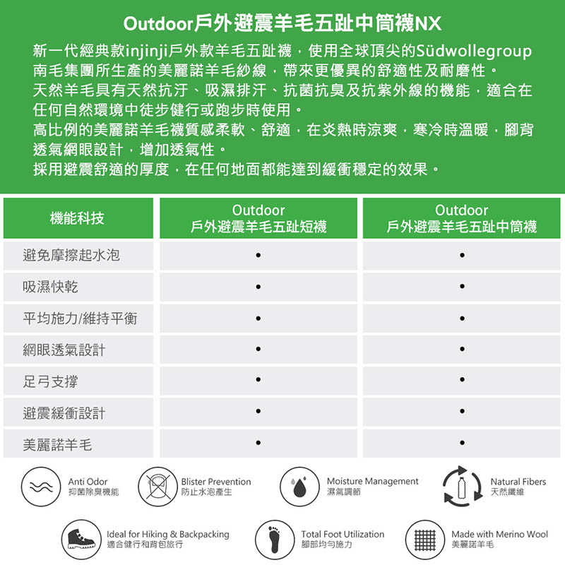 首頁 > 最新上架 > injinji Outdoor戶外避震羊毛五趾中筒襪NX NAA7694 NAA7608 NAA7648