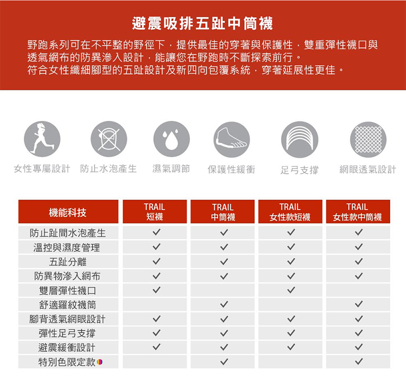 首頁 > 最新上架 > injinji 美國 女 Trail野跑避震吸排五趾中筒襪FX 彗星橙 高嶺綠 WAA39